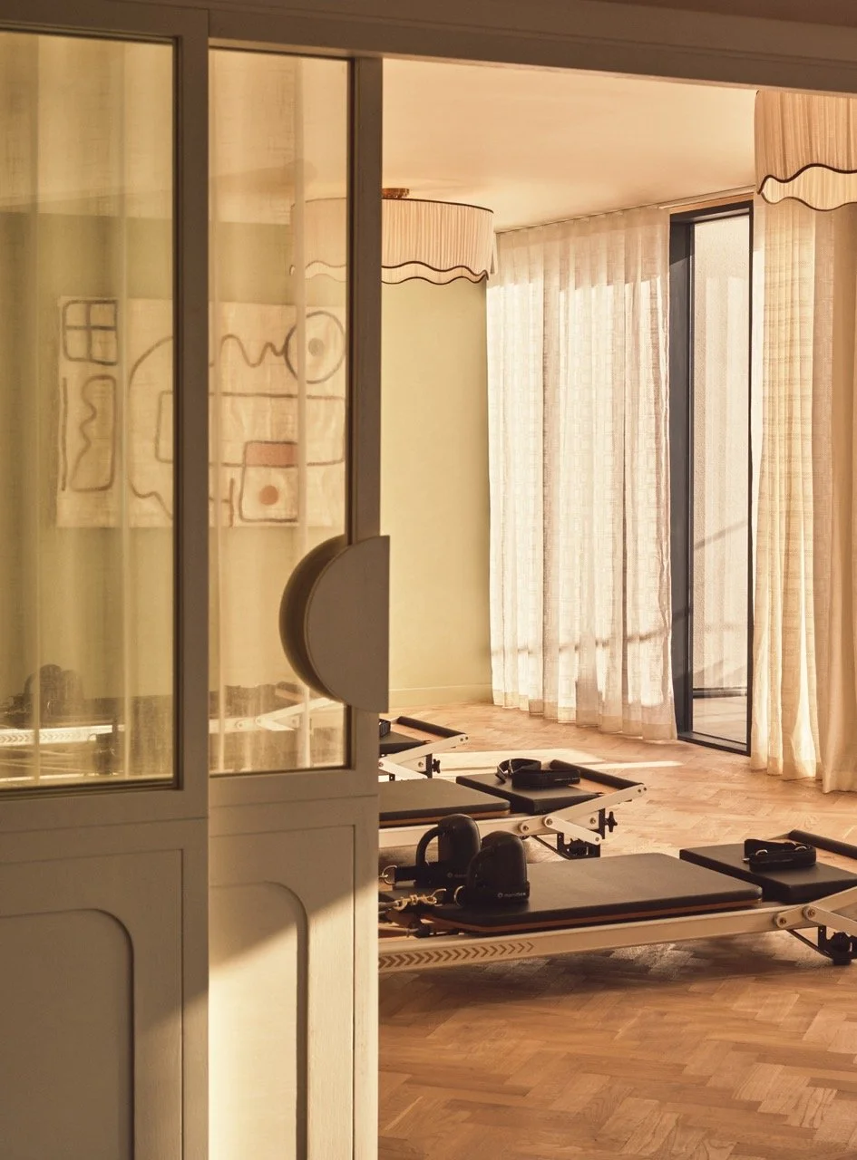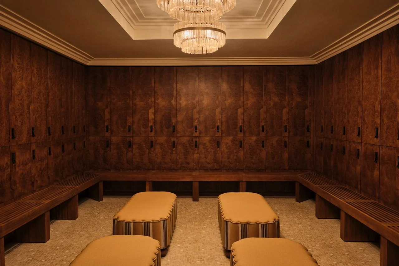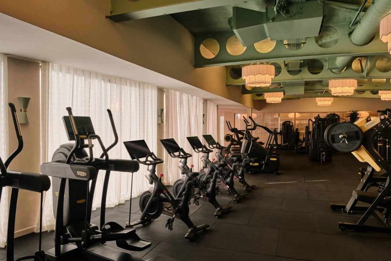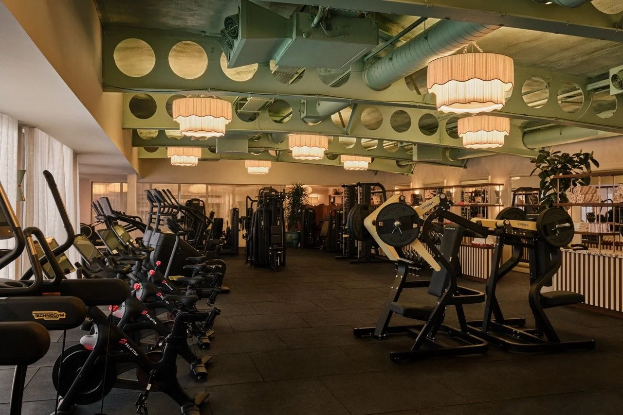 For the gym’s functionality, we selected state-of-the-art TechnoGym equipment, Peloton bikes, and a comprehensive free weights section. We designed two fitness studios with mirror paneling and Reformer Pilates machines, reinforcing the ceiling for boxing hooks to accommodate dynamic training styles.