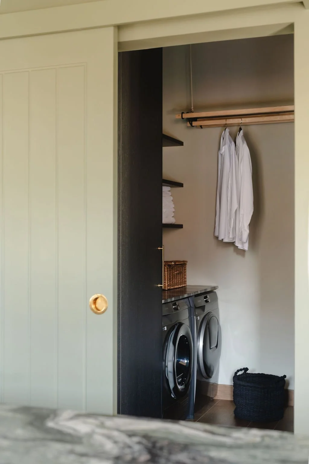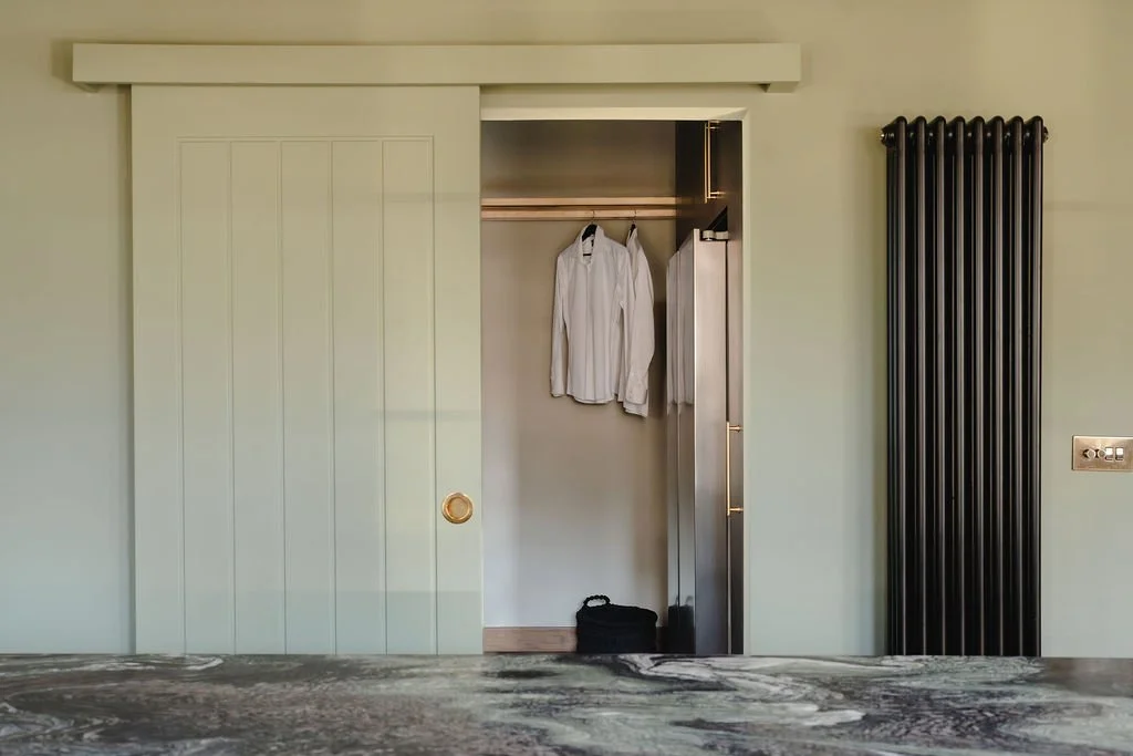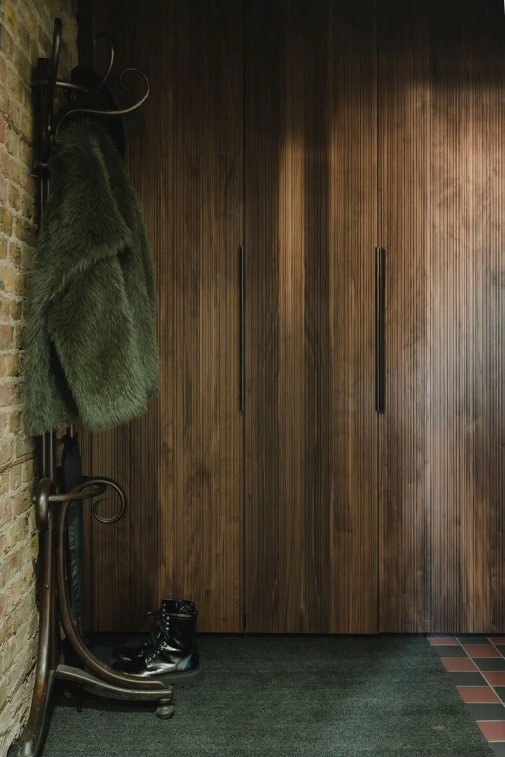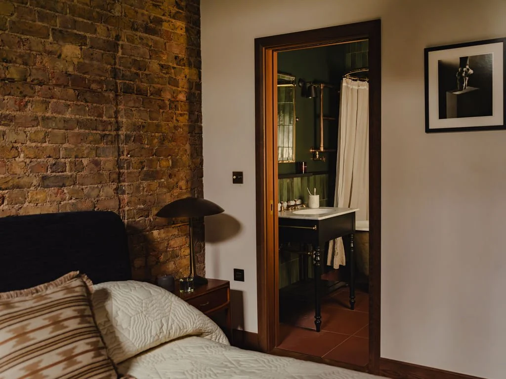 Our client, a musician, envisioned a home that felt authentic to its industrial roots. To achieve this, we reinstated raw, textural elements while reconfiguring the layout for greater functionality. The expansive family bathroom was reduced in footprint, allowing us to introduce both a dedicated cloakroom and a utility room adjacent to the kitchen. The guest bedroom, originally without an en-suite, was reimagined by optimising space at the end of the wide corridor resulting in a generously sized bathroom featuring a reclaimed Victorian freestanding bathtub.