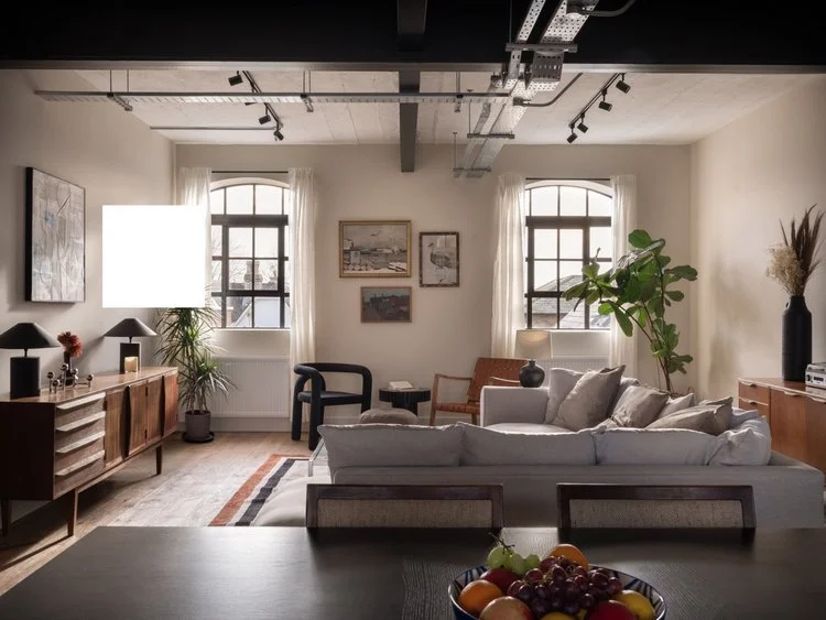 The four-meter-high ceilings, black Crittall windows, and exposed architectural steels, created the perfect backdrop for a loft-style living.